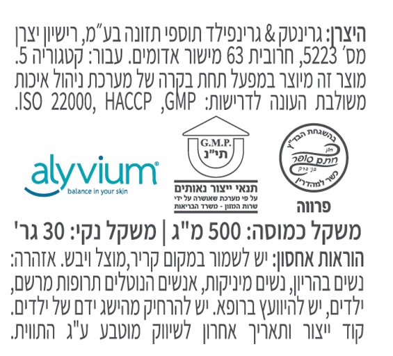 זהו תוסף תזונה המומלץ לכל אדם שרוצה לשמר ולשפר את בריאותו. כמו כן, הוא מיועד במיוחד לאנשים הסובלים מאלרגיות / מחלות עור.