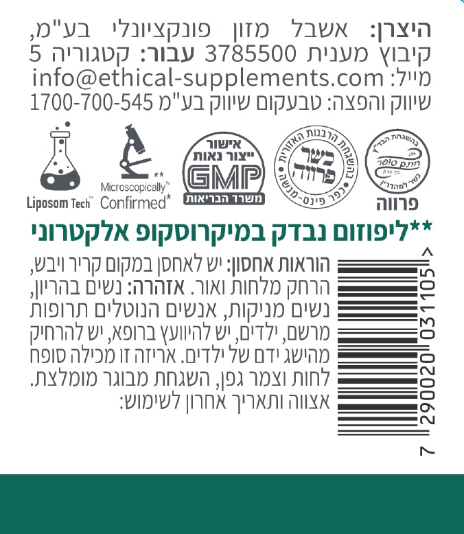 מוצר זה עבר בדיקה של מיקרוסקופ אלקטרוני לבדיקת תקינות ליפוזומים.